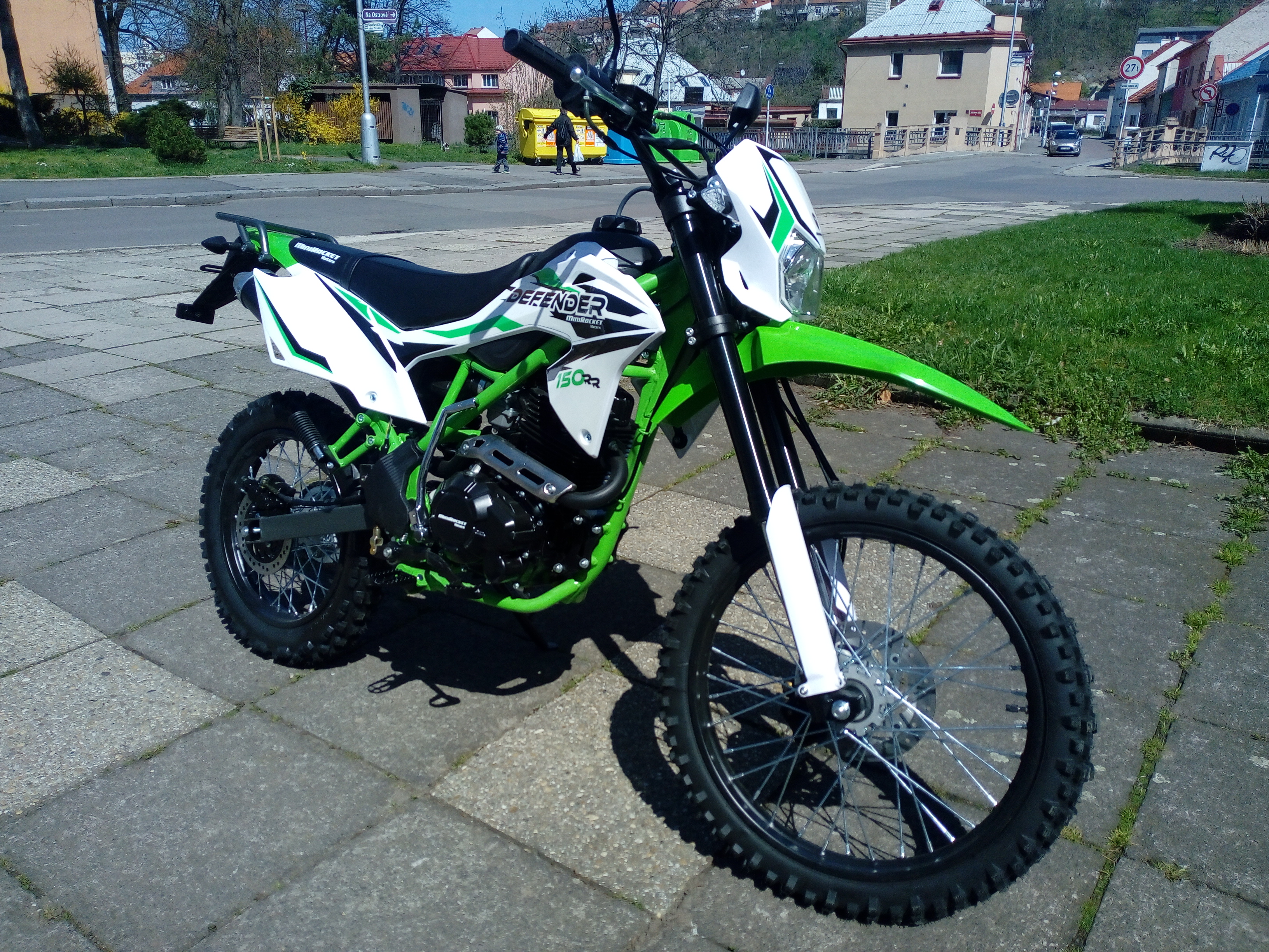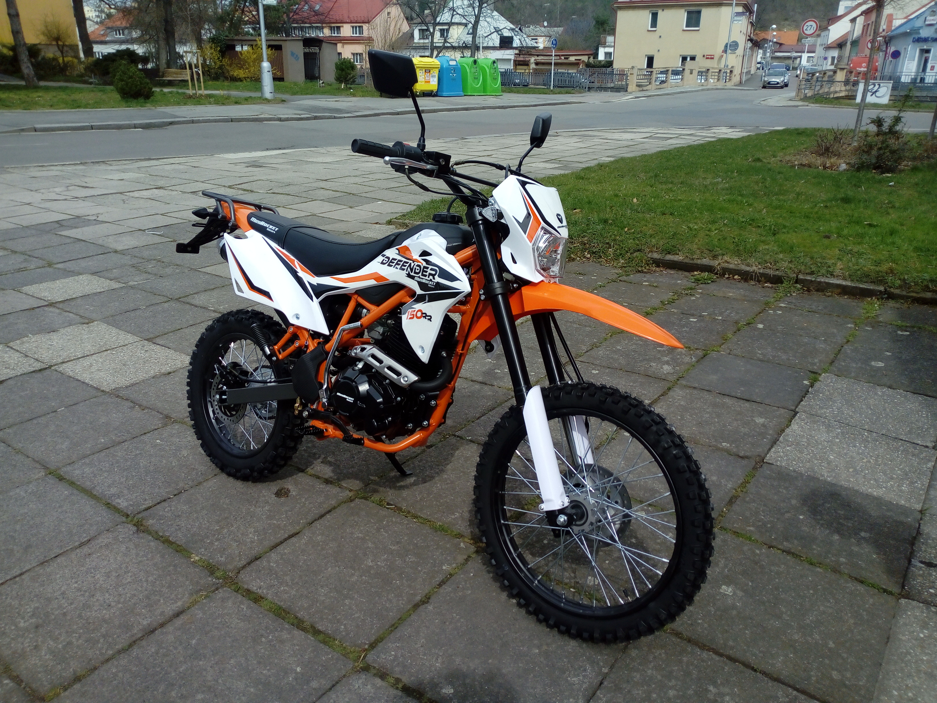 Model Defender ve světě pitbiků trochu popírá název pitbike, ale zároveň jde o nejprodávanější model ze všech, především ve specifikaci s motorem 250ccm na kolech 21/18. Motorka je neuvěřitelně vybavená a vyrobená. Za tu cenu je nepochopitelné, co vše dostanete...LED blinkry, světla, 5 rychlostí, nosič zavazadel, zrcátka, stupačky spolujezdce, startér i nakopávačku, ukazatel zařazené rychlosti! Často se nás zákazníci ptají, zda to má homologaci a může to na silnici...bohužel ne! Na papíry to nikdy nedostanete...ono je to jednoduchý = kdyby to mělo homologaci a plnilo to všechny potřebné předpisy a normy, tak by to stálo o sto tisíc víc. I přesto ale za ty peníze opravdu parádní stroj!