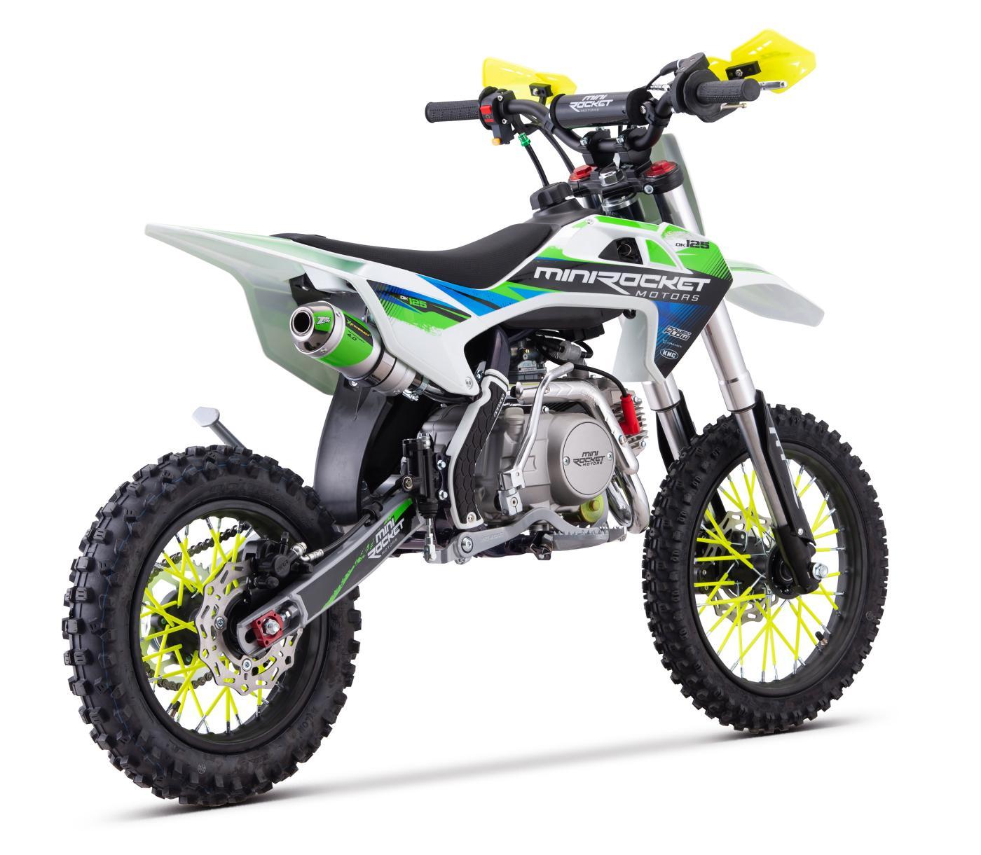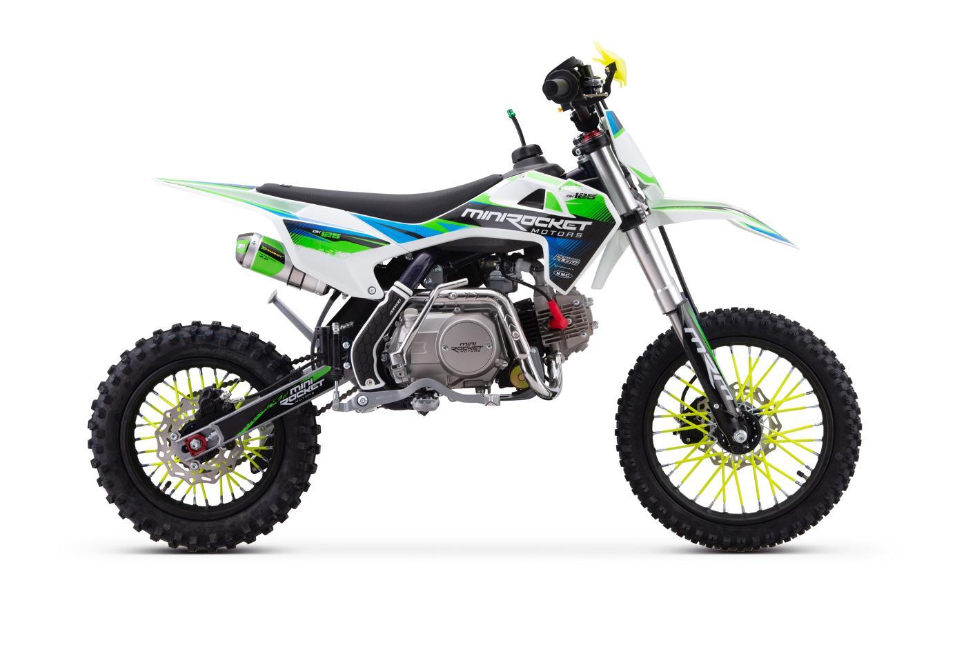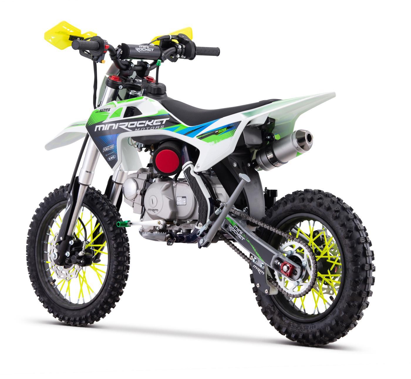Pitbike s klasickým lěžatým motorem 125ccm je vybaven 14" pneumatikou vpředu a 12" pneumatikou vzadu, manuální převodovkou a elektrickým startérem (včetně klasické nakopávačky)! Kvalitní Upside-down vidlice, nastavitelný zadní tlumič a inovovaná výfuková koncovka.