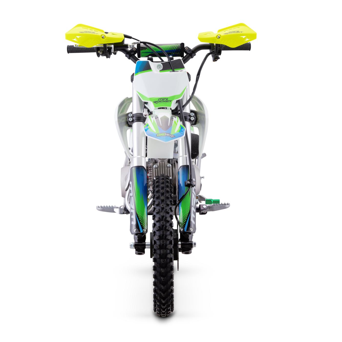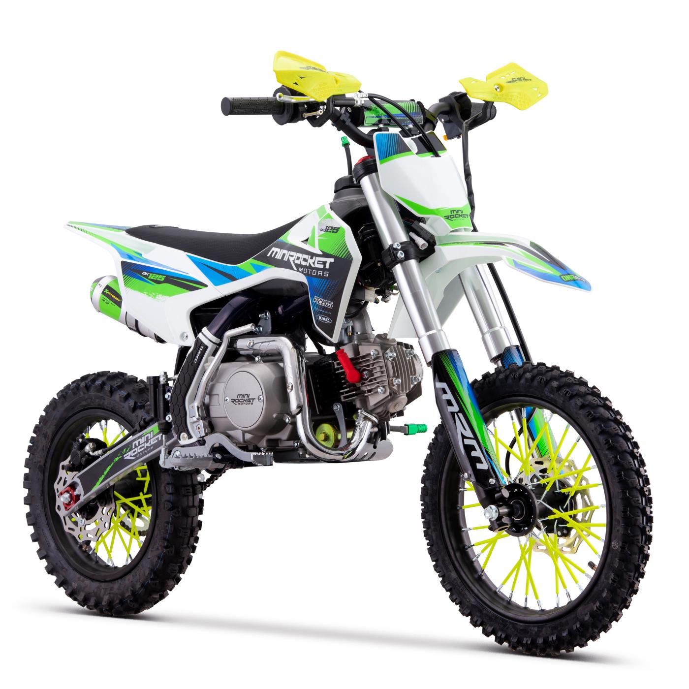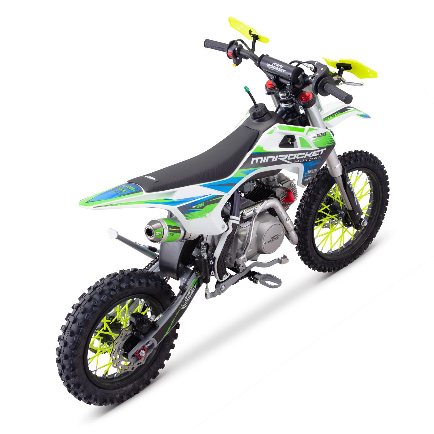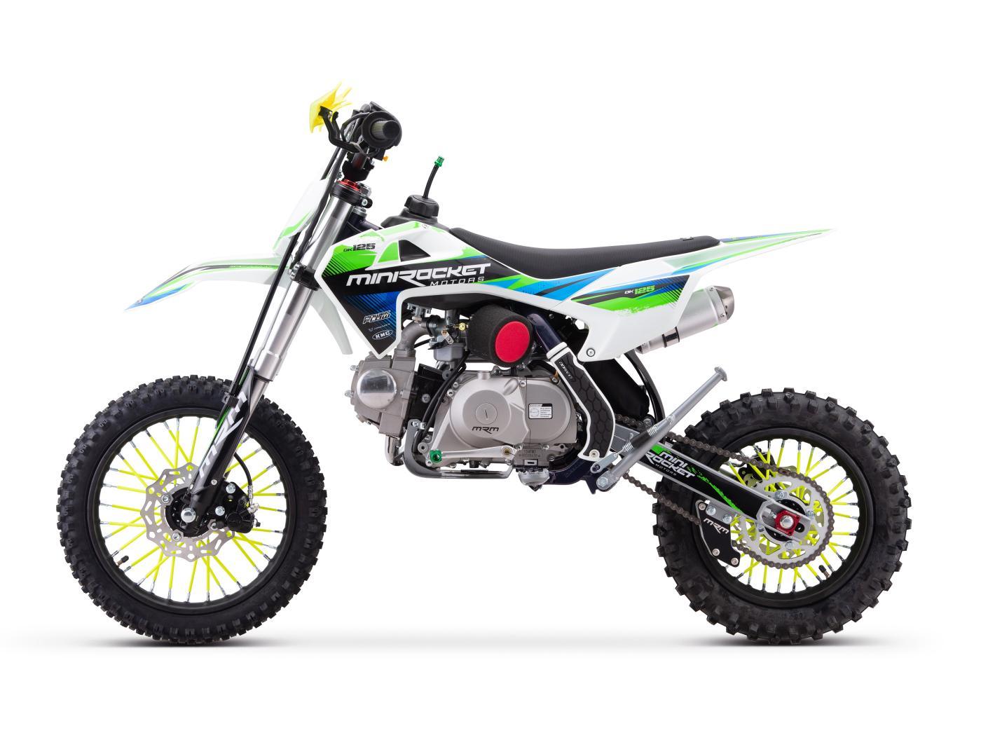 Pitbike s klasickým lěžatým motorem 125ccm je vybaven 14" pneumatikou vpředu a 12" pneumatikou vzadu, manuální převodovkou a elektrickým startérem (včetně klasické nakopávačky)! Kvalitní Upside-down vidlice, nastavitelný zadní tlumič a inovovaná výfuková koncovka.