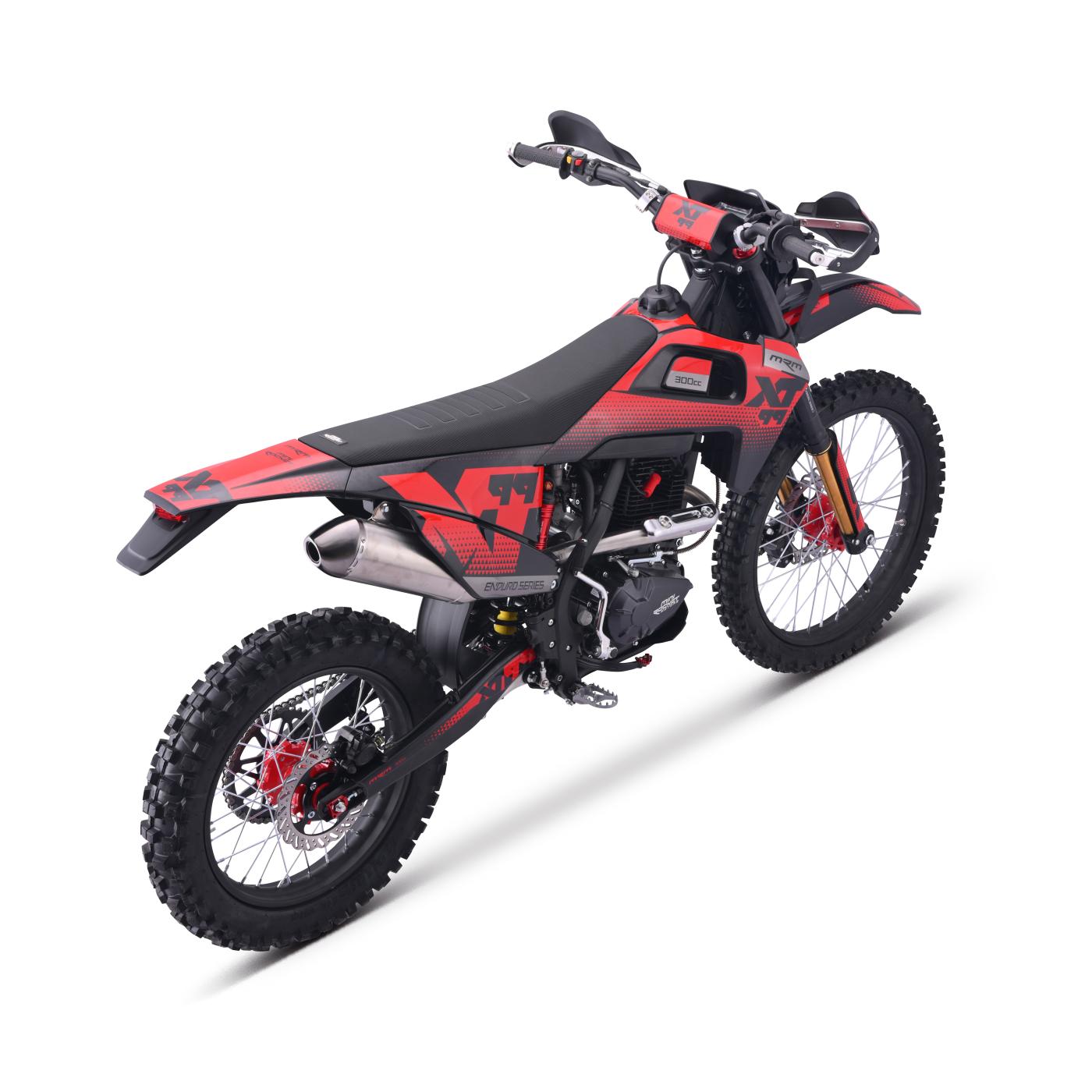 Čtyřtaktní motor ZONGSHEN PR300 nabízí výkon 16kW (21,75 koní) při 8500 ot./min. Je spolehlivý a dostatečně výkonný i pro nejnáročnější podmínky. Výfukový systém z nerezové oceli je navržen pro efektivní odvod spalin a dlouhou životnost. Zlepšuje výkon i vzhled motocyklu. Manuální 5-ti stupňová převodovka zajišťuje plynulé řazení a dynamickou jízdu v každém terénu. Výkonný vzduchový filtr zajišťuje optimální průtok vzduchu a zachycuje nečistoty. Je uložen v snadno přístupném boxu pod bočním plastovým krytem se zacvakávacími úchyty.