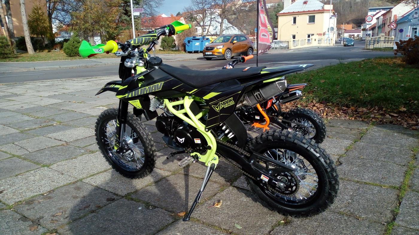 Pitbike Zuumav K3 140ccm je čtyřtaktní motorka určená pro děti ve věku 9–14 let, ideální pro začínající i pokročilé jezdce. Má opravdu silný motor s výkonem 11kW, manuální čtyřrychlostní převodovku, hydraulické kotoučové brzdy a nožní startér(nakopávačku). Kola mají rozměry 17” vpředu a 14” vzadu, což zajišťuje stabilitu a komfort při jízdě. Motorka je navržena pro zatížení až 95 kg a má odolný rám z vysokopevnostní oceli.
