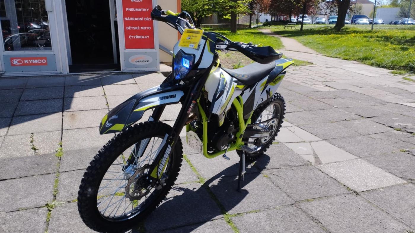 Velmi podařená motorka Zuumav K5, která je svou kvalitou a parametry velice oblíbená. Motorka plnohodnotné velikosti na kolech 21“ vpředu a 18“ vzadu. Dostatečný výkon je zaručen motorem o obsahu 250ccm s pěti stupňovou převodovkou. Motorka je vybavena přední a zadní hydraulickou brzdou, tlumiči s nastavitelnou tuhostí (záruka komfortní jízdy i v těžkém terénu), masivním ocelovým rámem a laděným výfukem, který je zárukou skvostného zvuku.