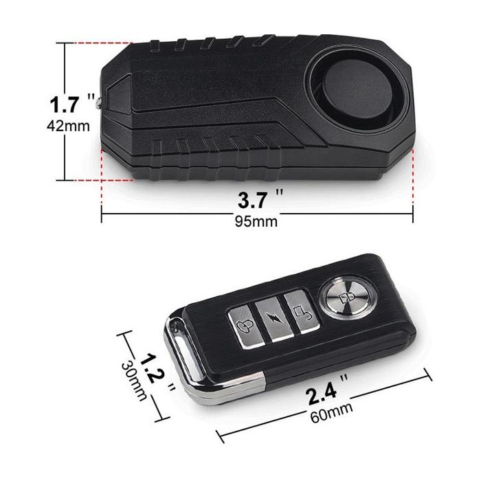 Alarm použitelný téměř pro každý model koloběžky. Modul se sirénou se umístí do koloběžky (např. k řídící jednotce). Dálkovým ovladačem se aktivuje alarm. Součástí balení je i kvalitní sada baterií. Lze nastavit 7 úrovní citlivosti pohybového čidla alarmu.