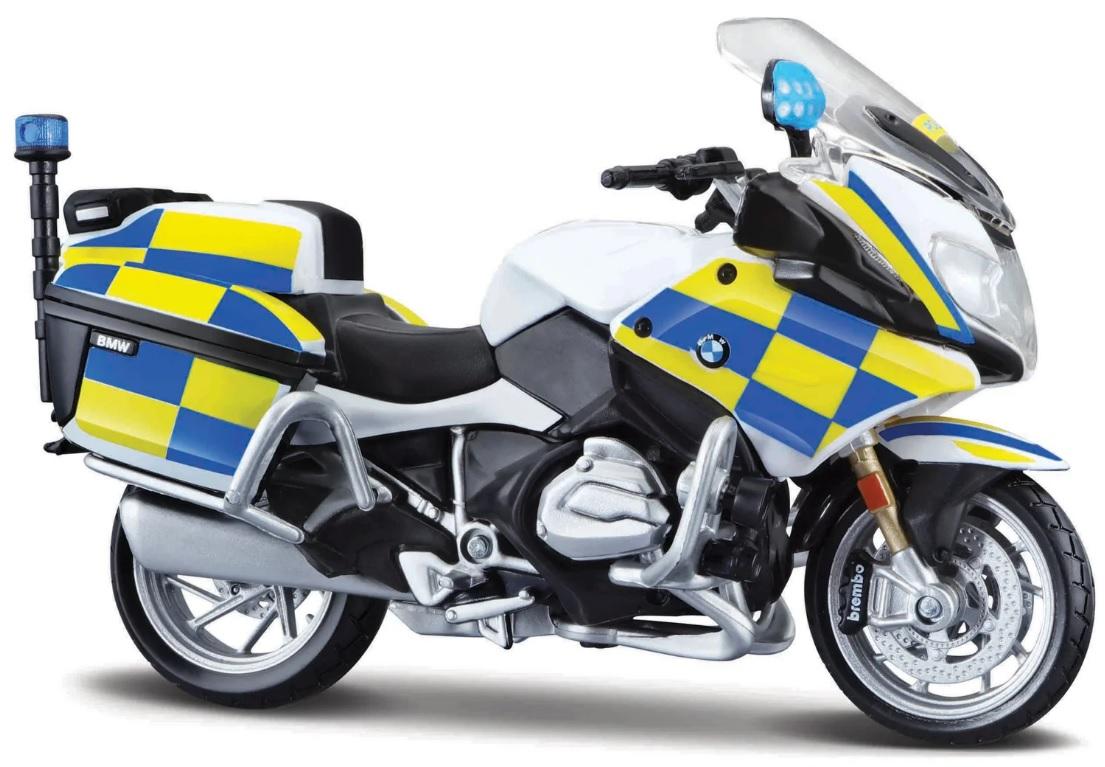Kovové modely motocyklů v modelovém měřítku 1:18. Motocykly mají otáčivá řidítka a odpruženou zadní nápravu. Jsou usazeny na černém plastovém podstavci.