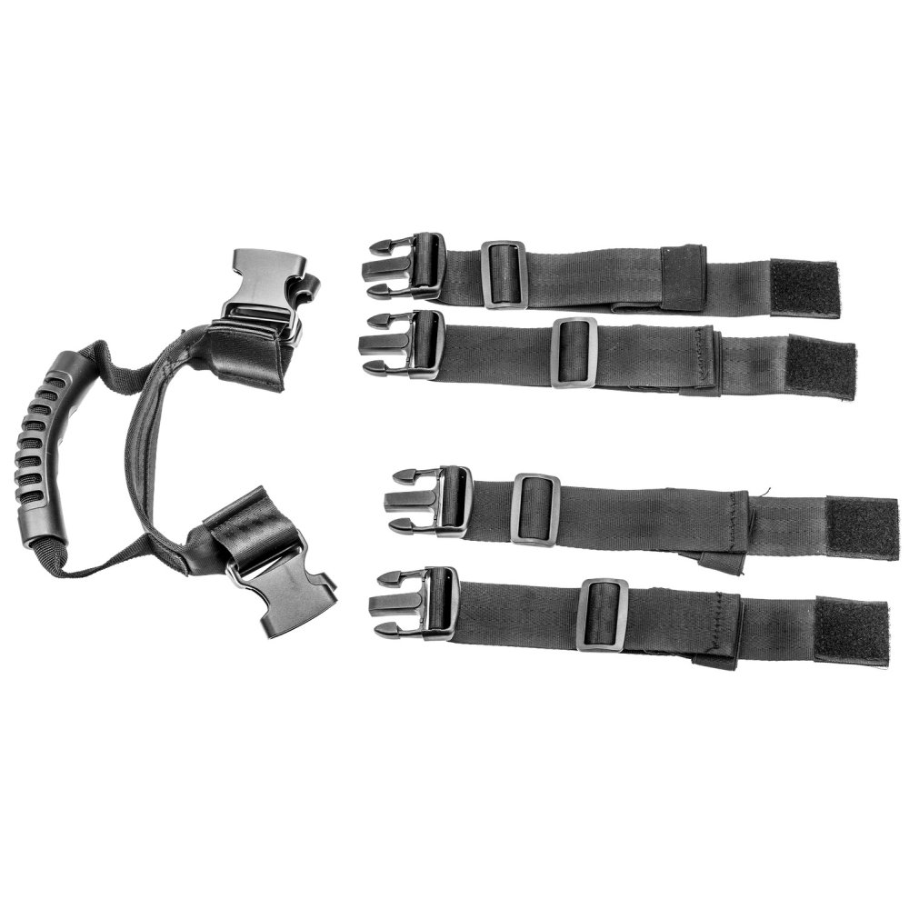 Multifunkční popruh na boční kufry motocyklu.