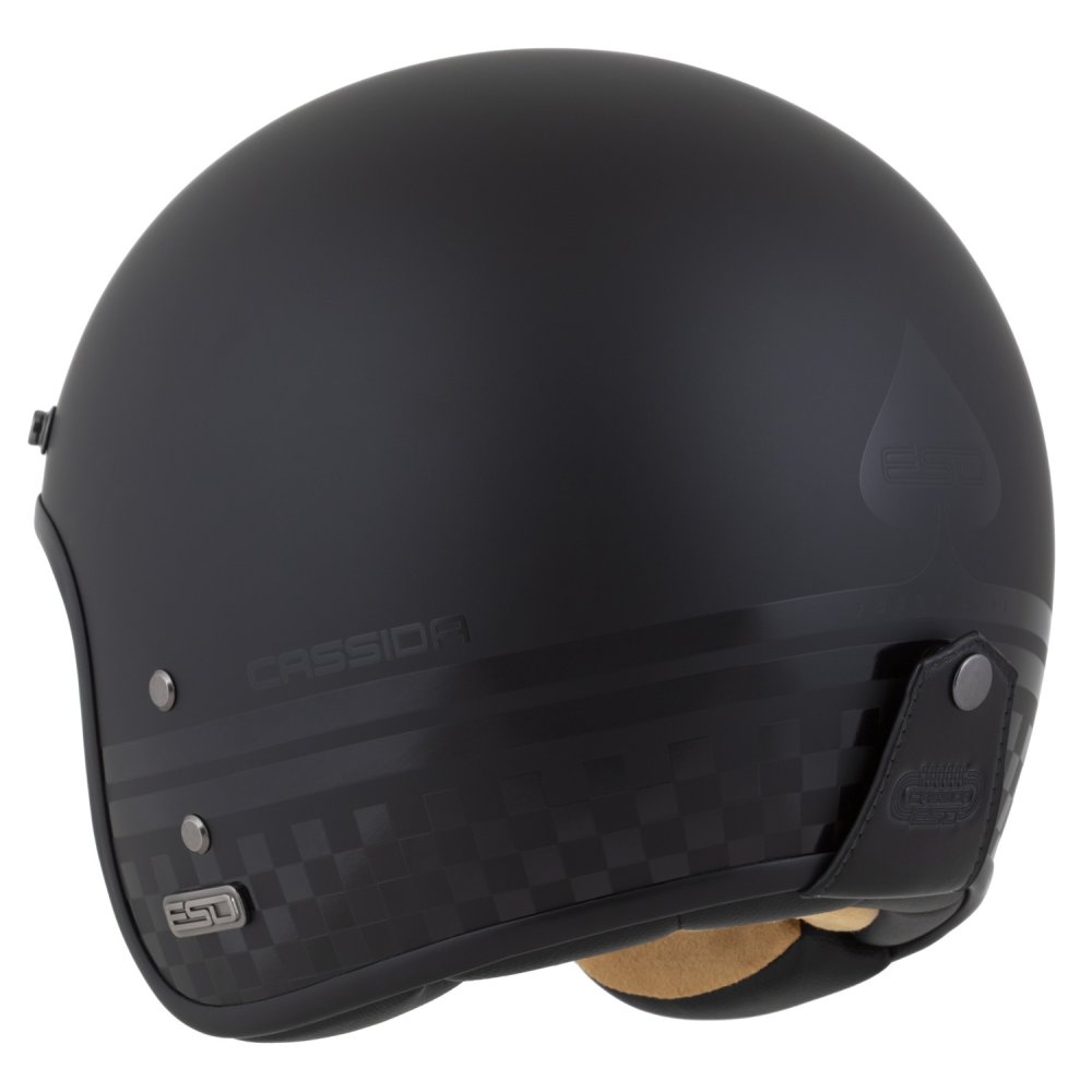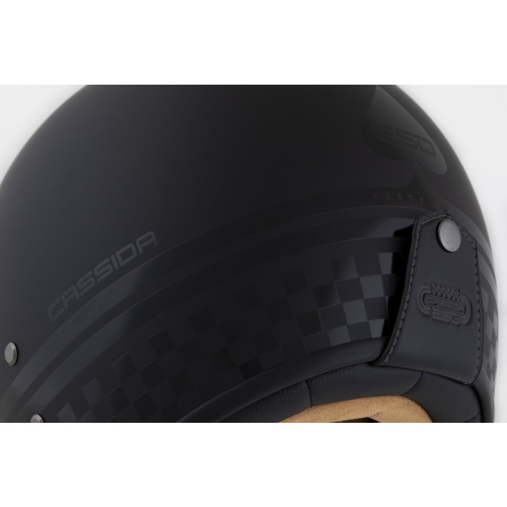 CASSIDA ESO je model otevřené neo retro přilby se sklolaminátovou skořepinou, která disponuje standardy prémiových přileb této kategorie a splňuje bezpečnostní a certifikační standardy současných přileb.