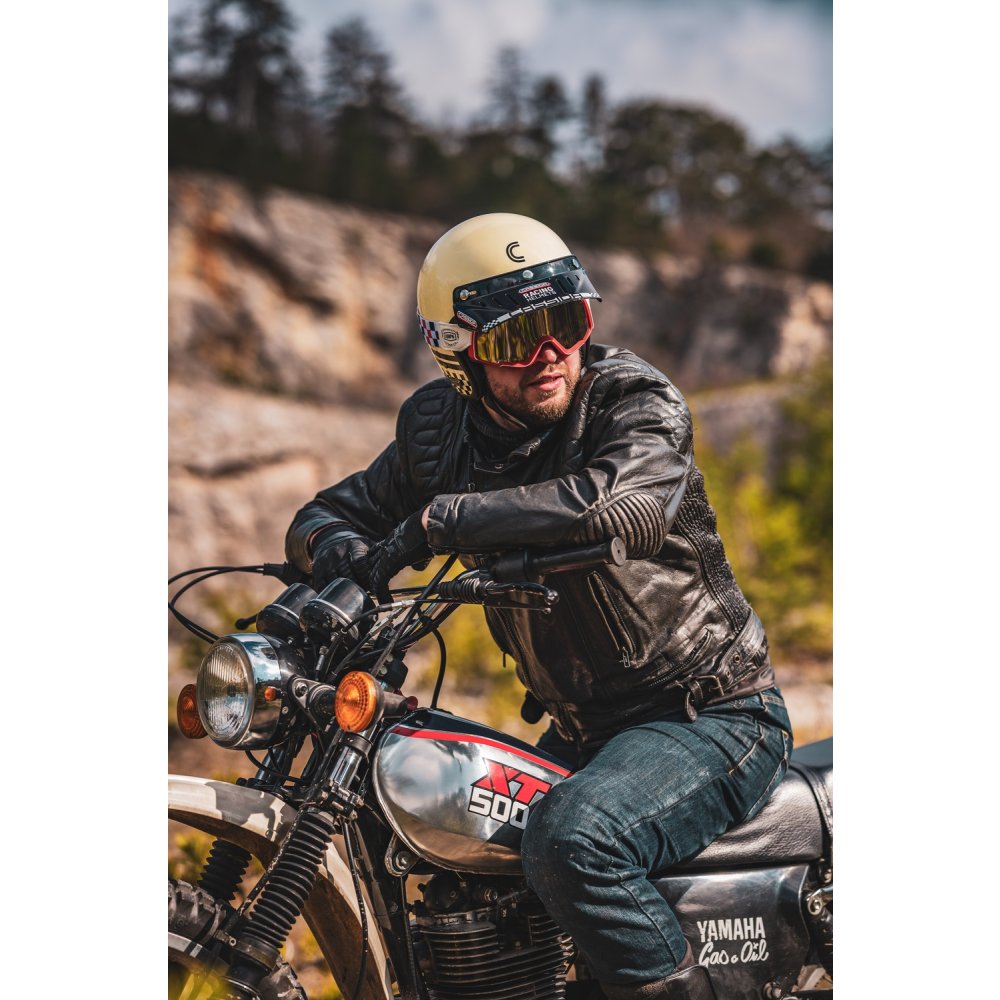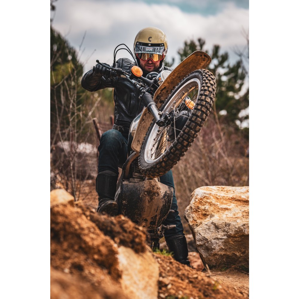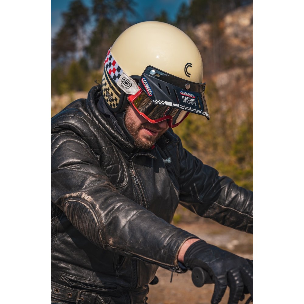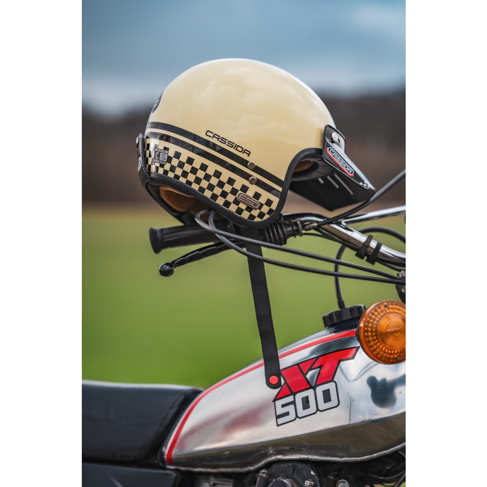 CASSIDA ESO je model otevřené neo retro přilby se sklolaminátovou skořepinou, která disponuje standardy prémiových přileb této kategorie a splňuje bezpečnostní a certifikační standardy současných přileb.