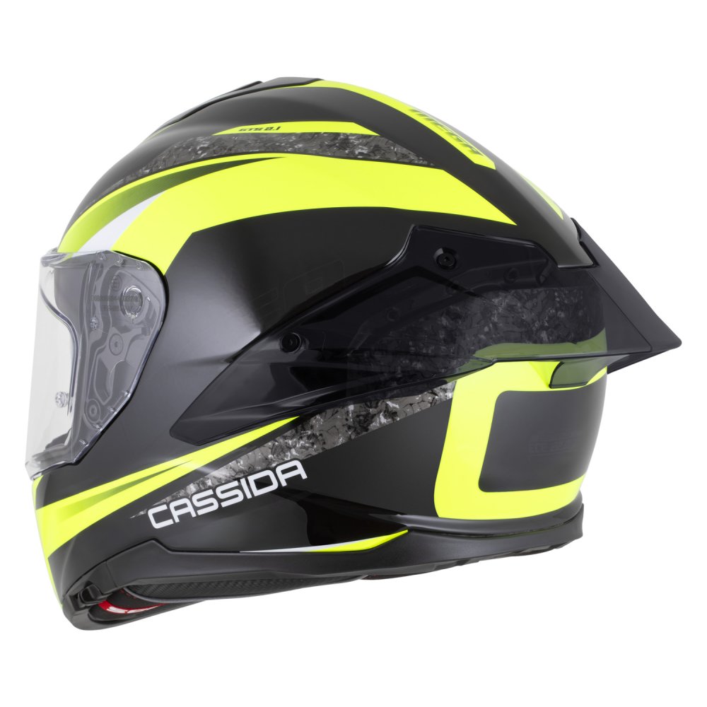 Verze GTS je nadstavbou modelu Cassida Integral GT, která dispojuje dlouhým a odnímatelným aerodynamickým spoilerem. Materiálový mix skořepiny ze skolaminátu v kombinaci s komfortní polyester výstelkou. Přilba je dostupná ve třech velikostech skořepiny s rozsahem velikostí až do velikosti 3XL. Příprava pro sluchátka komunikátorů a komfortní interiér s límcem, obepínajícím hlavu ve spodních partiích přilby, disponuje systémem odnímatelných lícnic Cassida Safety Opening System (Cassida SOS). Čiré plus tmavé plexi součástí balení.