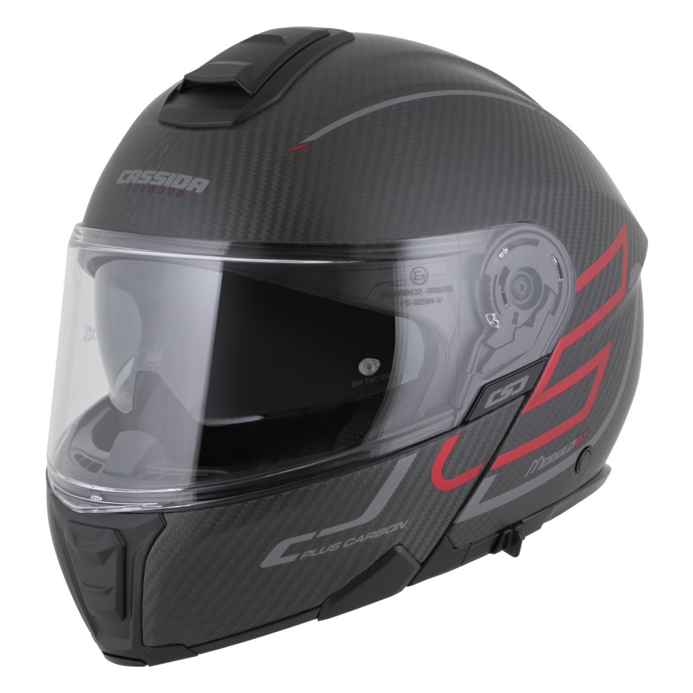přilba Modulo 2.1 Plus Carbon, CASSIDA (carbon matná/červená metalická/reflexní stříbrná/černá, vel. L)