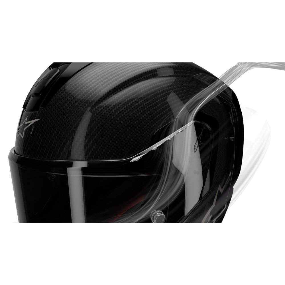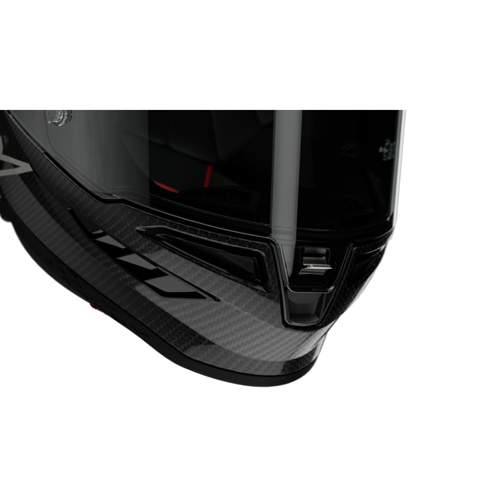 • Boční aerodynamické stabilizátory zajišťují aerodynamickou stabilitu přilby obzvláště v situaci, kdy jezdec řeší průjezd zatáčkou s náklonem a vychýlením těla mimo aerodynamickou ochranu kapotáže supersportovního motocyklu.