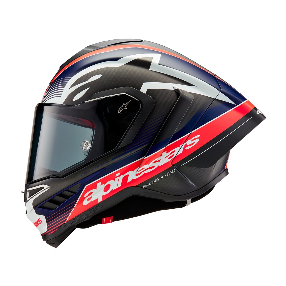 přilba SUPERTECH R10 TEAM, ALPINESTARS (matný karbon/červená fluo/modrá/bílá, vel. M)