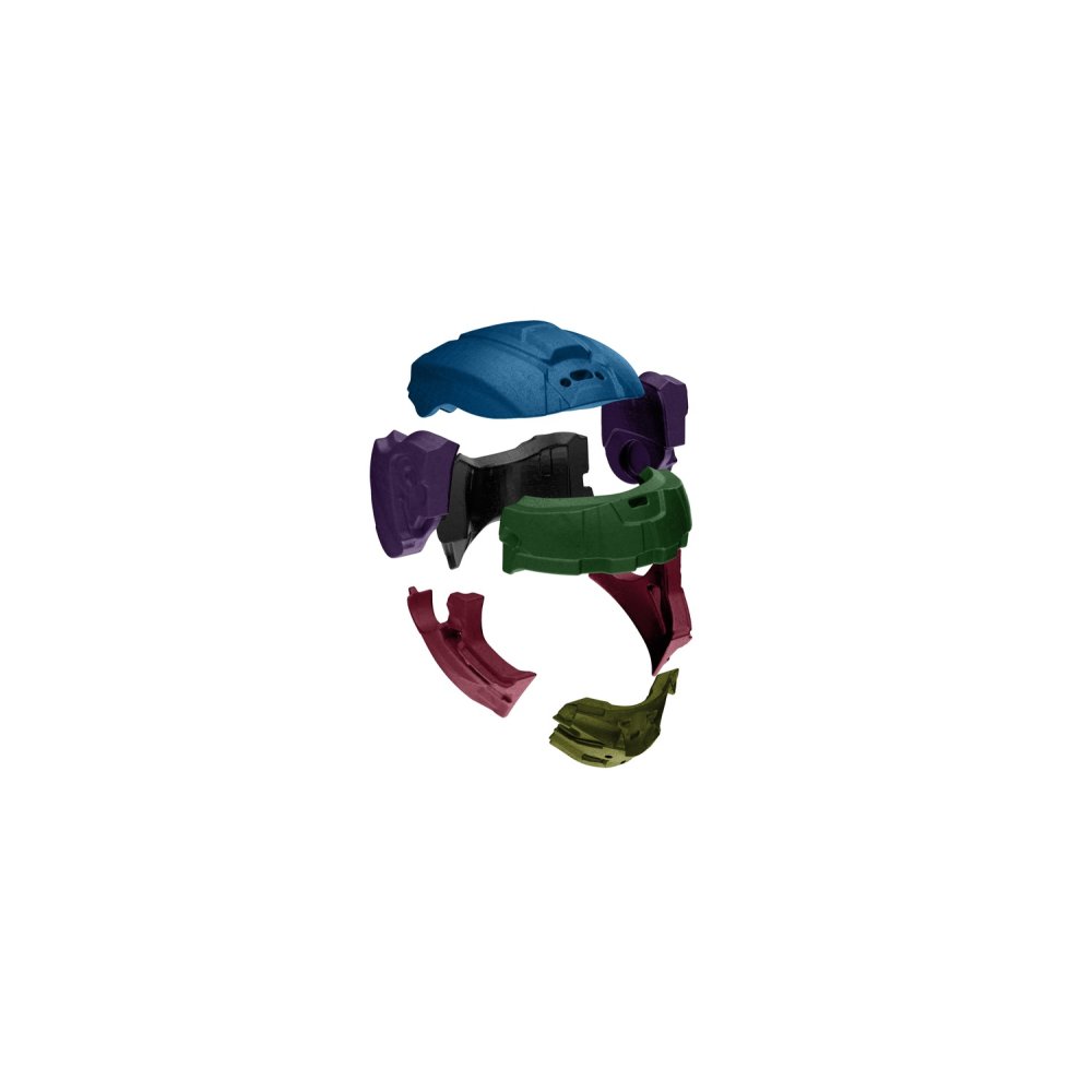 • Vnitřní absorpční jádro je tvořeno z 8-mi panelů EPS polystyrenu s 6-ti různými hustotami materiálu tak, aby přilba cíleně poskytla různé absorpční nárazové vlastnosti na místech, kde je potřeba.