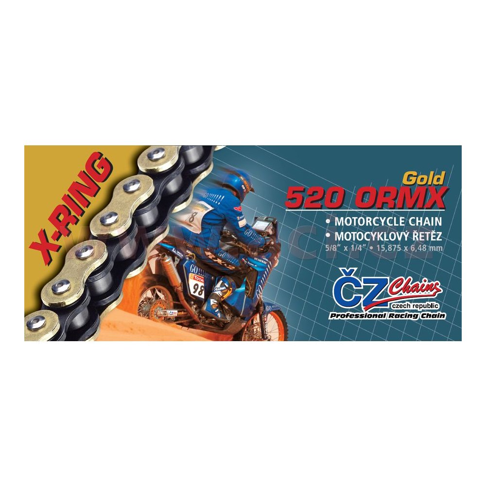 řetěz 520ORMX, ČZ - ČR (barva zlatá, 112 článků vč. rozpojovací spojky CLIP)