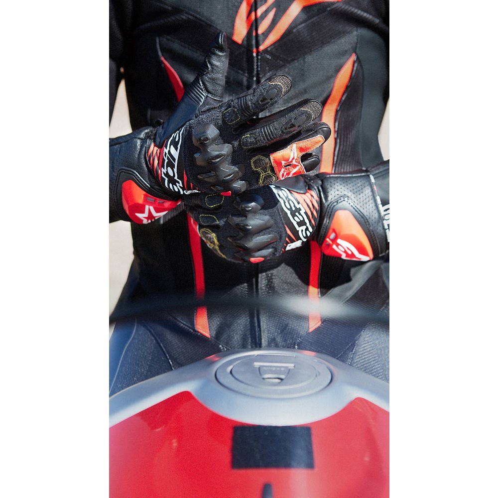 Rukavice GP TECH druhé generace jsou ultimátní racingové rukavice s inovativní bezešvou konstrukcí hřbetu ruky. Strečový materiál obšívky obsahuje vlákna KEVLAR® a zajišťuje zvýšenou volnost pohybu i cit v ruce při kontaktu s řídítky. Inovativní chránič zápěstí ze vstřikovaného plastu s dvojitou hustotou materiálu zajišťuje ochranu proti nárazu a oděru.