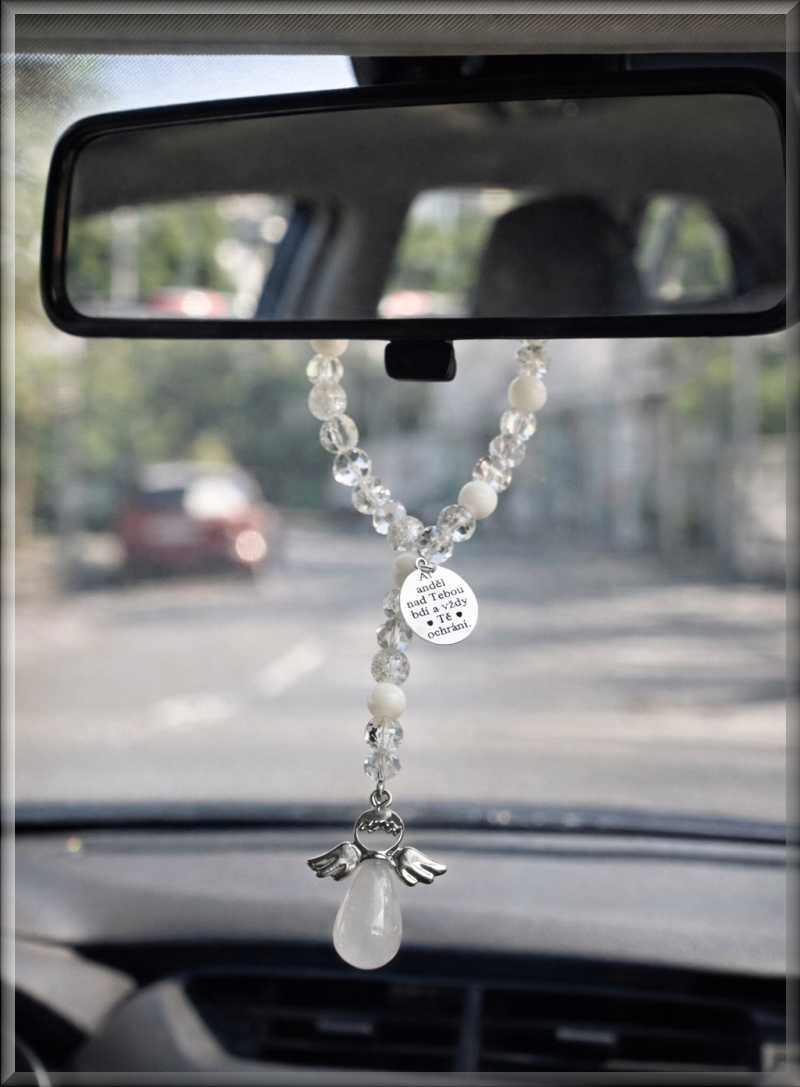 Talisman – růženec pro řidiče Anděl achát (s textem na přání)