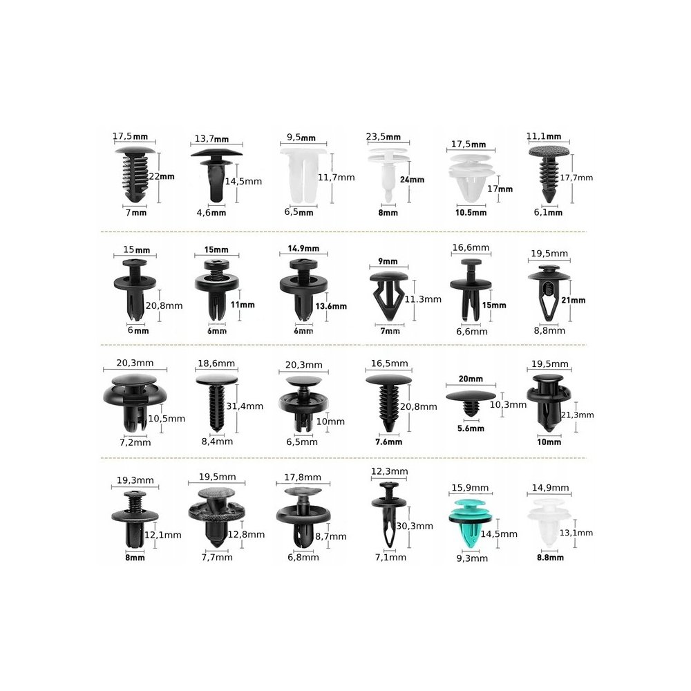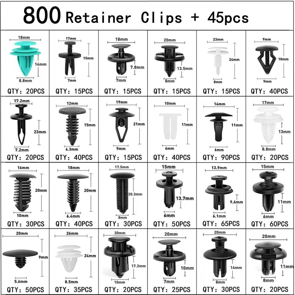 Tato sada spon, čepů a úchytů pro automobilové čalounění obsahuje 845 kusů.