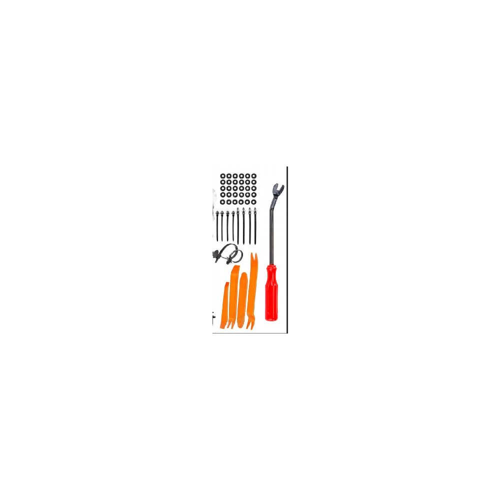 Je univerzálním řešením pro opravy a montáž v jakémkoli vozidle. Obsahuje různé velikosti a typy upevňovacích prvků vhodné pro většinu značek automobilů. Součástí je praktické páčidlo pro snadné sejmutí čalounění bez rizika poškození.