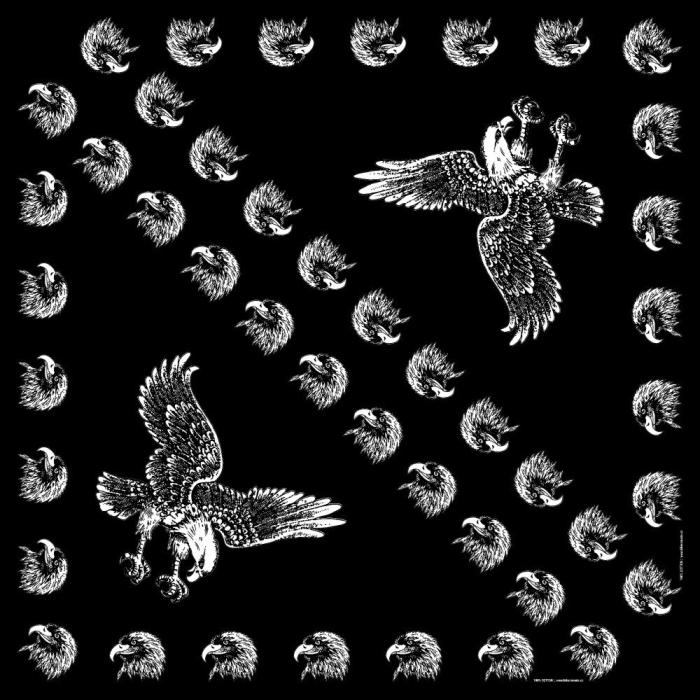 Velký čtyřcípý šátek s jedinečným motivem. Tyto šátky jsou cca o 25 cm větší než standardně prodávané šátky s různými motorkářskými, westernovými či jinými motivy. Šátek lze použít na hlavu jako čepičku, na obličej jako masku, na krk jako šálu či jinak dle fantazie každého uživatele.
