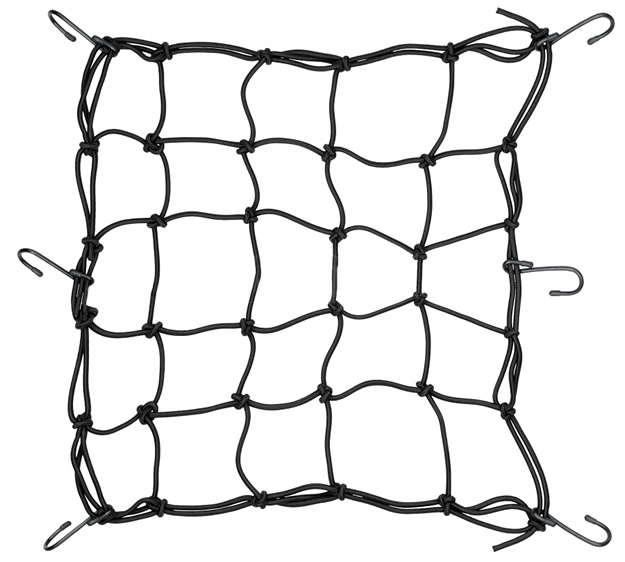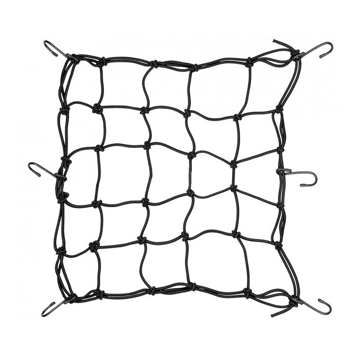 Gumová síťka s pogumovanými háky pro přichycení zavazadel 40x40cm.