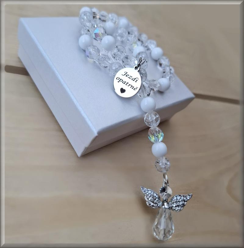 Talisman – růženec pro řidiče Anděl křišťál -Text totožný s prezentační fotografií