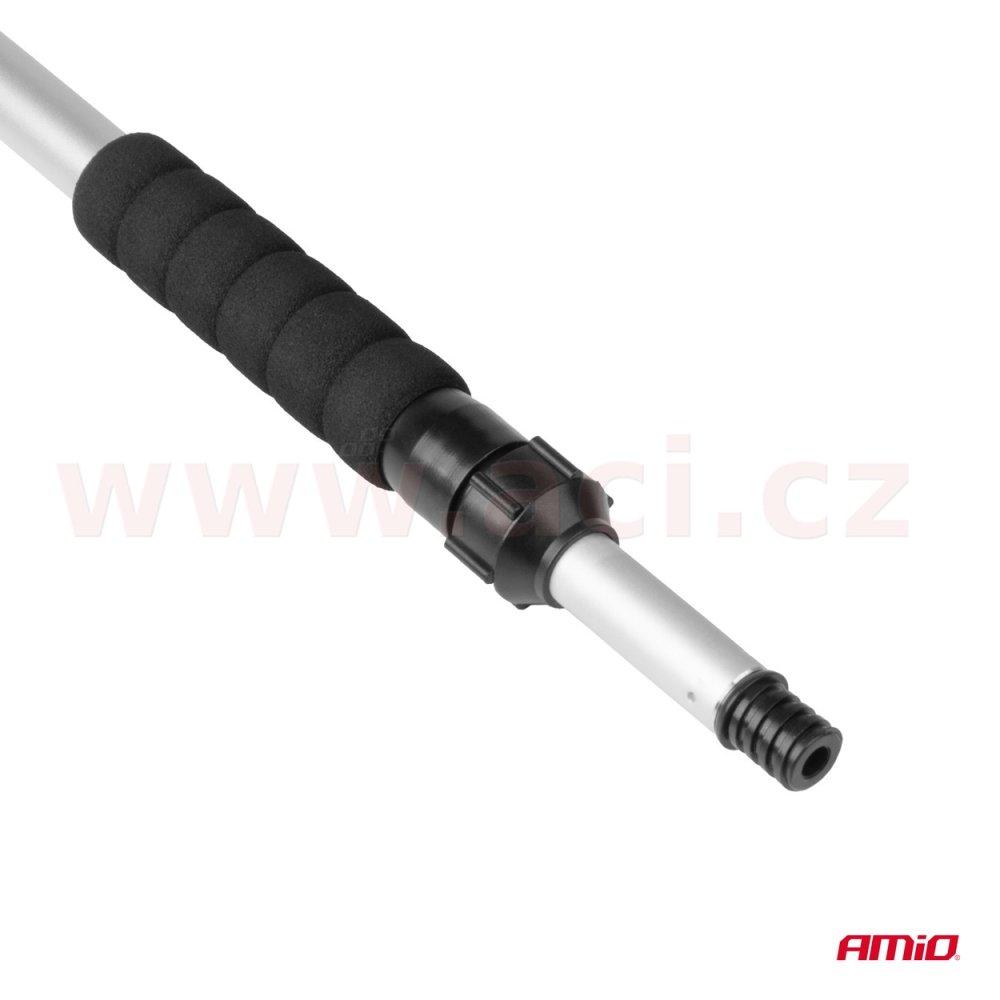 Teleskopická rukojeť umožňuje snadno přizpůsobit délku kartáče konkrétnímu povrchu a pohodlně dosáhnout na střechy osobních aut nebo vyšší části karoserie.